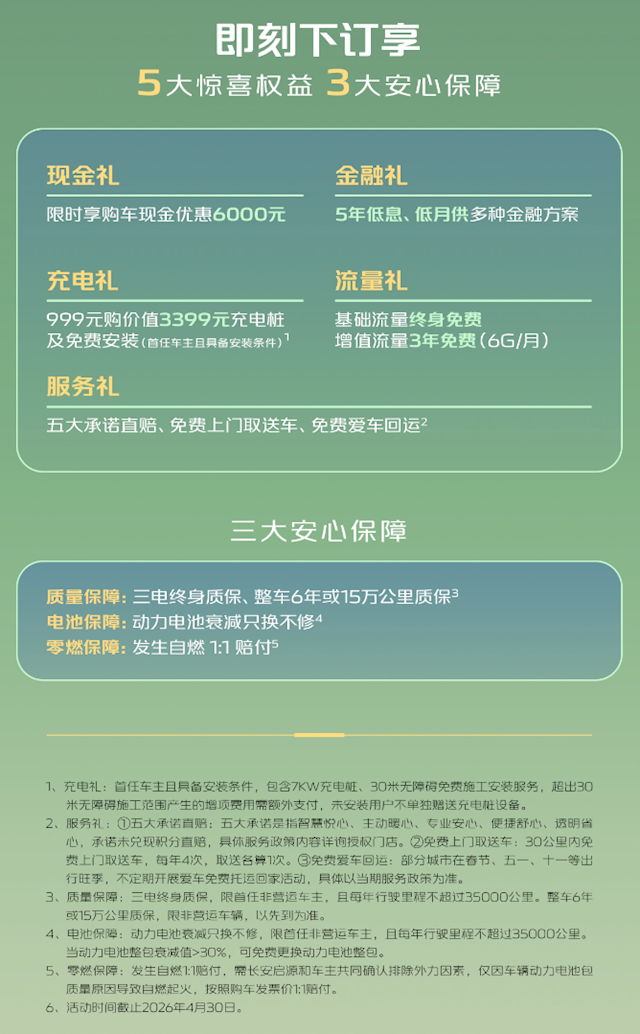 该车搭载最大功率120千瓦的前电机,全系标配宁德时代磷酸铁锂电池,CLTC续航405km、506km,支持3C快充,15分钟补能120km。